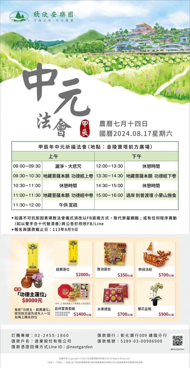 113年8日17日中元節年度法會